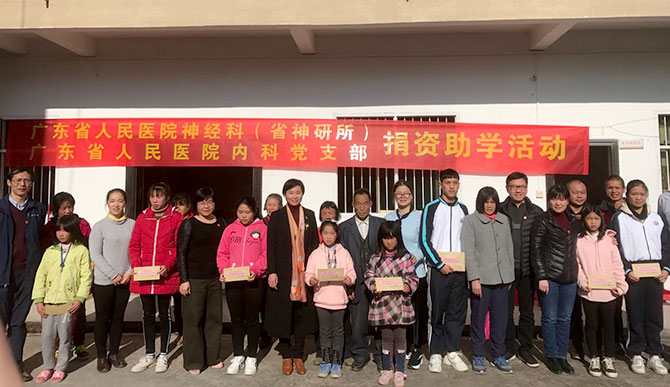 不忘初心、牢记使命。为响应十九大号召,我院内科第五党支部神经科党员及入党积极分子在张文静支部书记及张玉虎副所长的带领下,冒着严寒,于12月15-16日奔赴河源市连平县开展捐资助学及下基层技术帮扶活动。