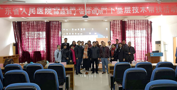医疗是个民生问题,事关国家发展全局,党的十九大明确提出:要坚持在发展中保障和改善民生,实施健康中国战略。为响应国家推动医疗卫生工作重心下移、医疗卫生资源下沉,推动城乡基本公共服务均等化。次日上午,支部来到连平县人民医院,开展医疗护理技术帮扶活动。张玉虎副所长详细介绍了广东省神经科学研究所及神经科的概况、新技术开展及学科发展情况。随后由脑血管介入骨干李昌茂医生及张文静支部书记分别带来了《缺血性脑血管病急性期再通治疗》及《吞咽障碍的管理与早期饮食治疗》等精彩内容,现场反应热烈、互动频繁。学术讲座后,由张玉虎主任及段金海主任带领专家组,深入病房,为当地医生工作中碰到的疑难问题进行详细解答,手把手地传授经验,受到当地医患高度赞扬及充分肯定。李少芳和古瑞平两名专科护士带领护理组,指导护理个案查房,以及进行业务交流。本次学术交流活动,为我们两家医院搭建互相交流和学习的平台,实现知识的传承,技术的传承和理念的传承,为基层医疗服务和基层老百姓的健康贡献我们的一份力量。