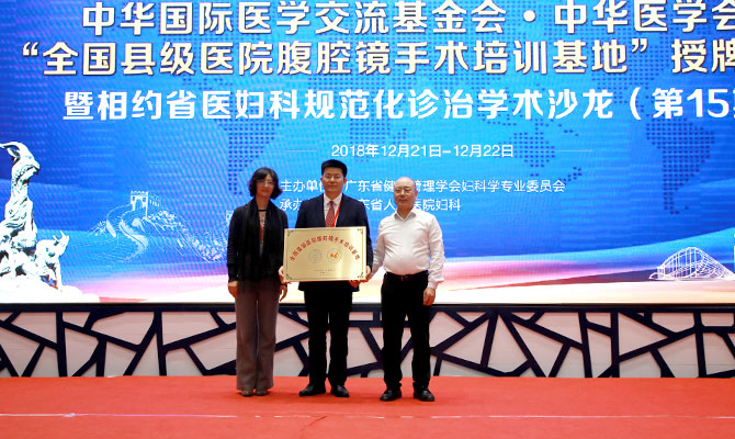 12月21日,我院妇科顺利通过了中华国际医学交流基金会和中华医学会的严格评审,正式成为“全国县级医院腹腔镜手术培训基地”,这是我院妇科内镜培训基地首次得到国内的高度认可,必将成为广东省人民医院妇科浓墨重彩的一笔。授牌仪式当天在我院多功能厅隆重举行,中华国际医学交流基金会国际部刘昕扬主任、我院徐力新副院长、妇产科刘木彪主任,以及100余位来自全国各地的专家教授和妇产科同道参加了此次授牌仪式和随后的学术会议。