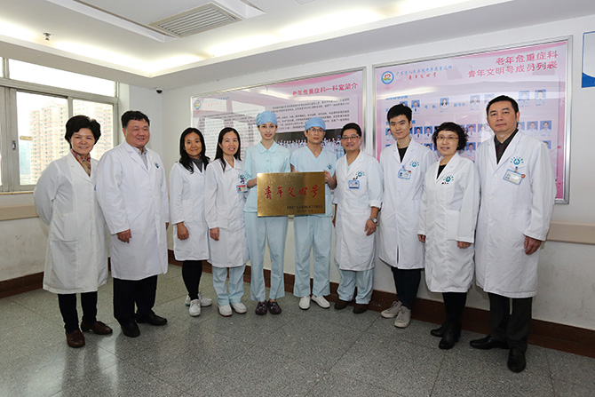 老年危重症科青年文明号现有号手55名,是由科主任王首红亲自担任号长的、年龄35岁以下占比60%的一支充满活力、开拓进取的年青队伍。他们坚持党建带团建的理念,重视青年团员的思想教育,积极配合医院做好推优入党的工作。他们的文化核心是珍爱生命,他们的目标是“搏九死与一生,创生命之奇迹”,他们众志成城,始终坚持快速、高效、优质的服务以及将最佳的治疗方案带给患者。他们在全面抓好医疗质量的同时,重点推进老年重症患者的多器官功能障碍的整体管理方案,形成了数字化重症信息系统平台,他们是一支综合救治能力强、团结友爱、积极向上的老年重症救治团队。