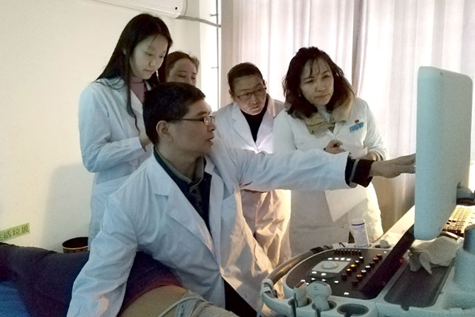 钱明阳主任为患者行超声心动图检查并指导当地技术骨干