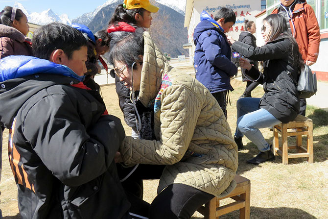 3月24日,由我院心内科副主任医师、广东省2017和2018年度援藏专家、现工作于市林芝市人民医院的黄晓忠主任组织协调专家团队一行,历时2小时抵达位于林芝西北部海拔将近4000米的工布江达县错高乡中心小学,开始了先心筛查义诊活动。我院参与此次义诊活动的其他专家包括:心儿科李渝芬主任、钱明阳主任医师、孙凌博士、洪钿医师,成人心脏超声室费洪文主任和广东省2018年度援藏专家许燕副主任。