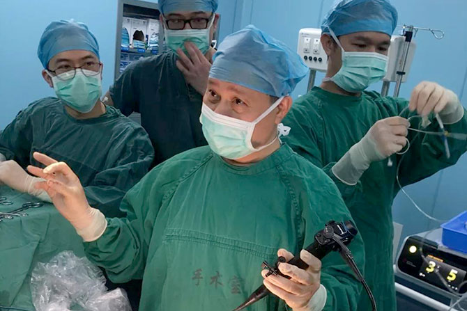 3月21日下午,简志祥主任只身来到英德。由于王红旭主任医师进行了缜密术前准备,简志祥教授下车后直奔手术室,主刀实施“肠粘连松解+胆总管切开取石+肝左外叶切除+胆道镜探查+T管引流术”,殷子博士、王红旭主任医师及医疗骨干协助,医院相关专业医务人员现场学习。手术历时近3个钟,顺利完成。病人平安返回病房,继续进行抗感染、护肝、护胃、营养支持等治疗,目前生命体征平稳。下午6点多,英德市人民医院院长吴凡宇会后来到科室与简教授座谈,介绍了英德人医目前的发展状况,简教授首次来到英德,对英德市人民医院学科发展认可,同时也表达了对基层医务人员的关心支持。