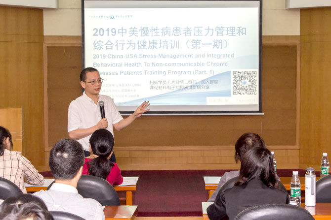 2019年4月19 - 20日,我院举办2019中美慢性病患者压力管理和综合行为健康培训班(第一期)。此次培训班由我院心身医学科、心内科、中国民族卫生协会心理健康分会、深圳大学脑适能与技能学习实验室主办。心身医学科主任谢永标主持。