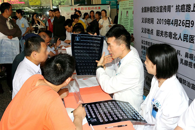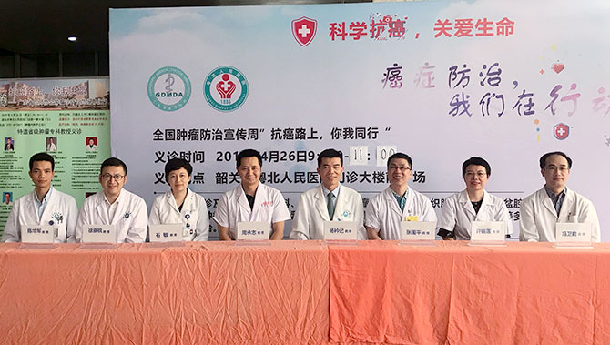 4月26日上午,广东省肿瘤医师协会肿瘤内科医师分会主席,我院肿瘤中心主任杨衿记教授,率广东省医师协会肿瘤内科分会专家团至韶关市粤北人民医院开展全国肿瘤防治周“抗癌路上,你我同行!”大型义诊活动,普及科学防癌的理念,提高居民防癌、抗癌意识,促进癌症的早发现、早诊断、早治疗,引导公众远离不良生活习惯,建立健康生活方式,实现对癌症的有效防控以及规范化诊疗。现场吸引了数百名患者和家属前来咨询问诊。