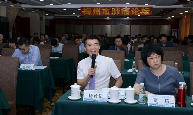 2019年5月25日,广东基层医师内儿科诊疗技术培训系列项目-肿瘤内科医师分会2019年梅州培训班暨梅州市肺癌论坛在梅州市召开。广东省医师协会肿瘤内科医师分会主任委员、我院肿瘤中心杨衿记主任率广东省医师协会肿瘤内科分会专家团针对肺癌、淋巴瘤、乳腺癌、肠癌等病种的规范化诊疗进行授课,来自广州、东莞、梅州等基层医院200余名医护人员参加培训。