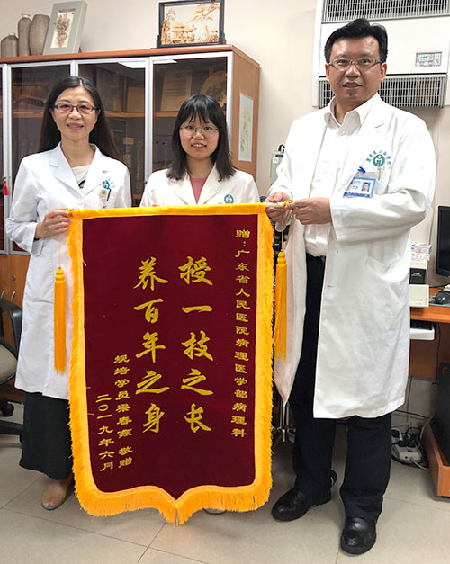 2019年6月25日,我科2016级全国住院医师规范化培训社会学员梁春燕顺利结业,并送来一面锦旗,上面写着“授一技之长,养百年之身”,她感谢医院领导给她提供了良好的学习及工作环境,感谢科室的各位带教老师无私的手把手教学和工作上无微不至的教诲,使得她在这三年的时间里获得了最宝贵的临床实践经验,并以优异的成绩通过了规培考试。