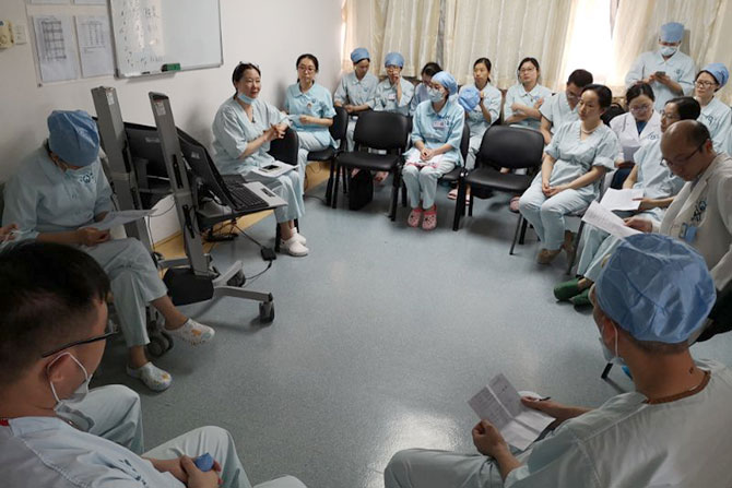 孙云霞主任补充说,作为临床教学基地,容易将教学查房做成医疗查房,两者最大的区别是医疗查房主要解决病人的治疗问题,而教学查房的主要对象是年轻医生,是要教会他们学会如何掌握临床技能及方法,诊断和治疗一个疾病,通俗地讲就是教会学生如何认识疾病,如何具体开展工作。