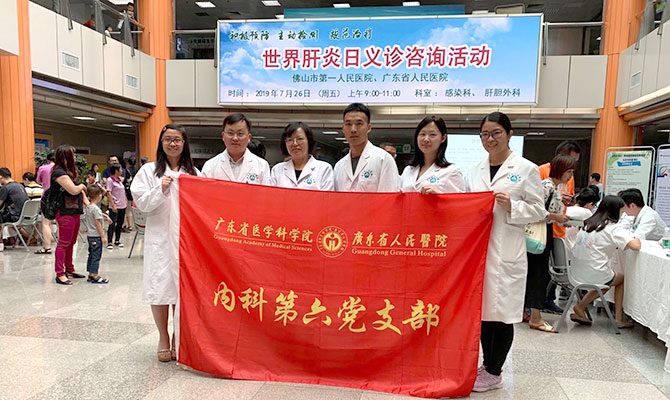 2019年7月28日是第9个“世界肝炎日”,今日的主题为“积极预防,主动检测,规范治疗,全面遏制肝炎危害”。我院内科第六党支部携手佛山市第一人民医院感染科党支部于7月26日上午在佛山举行主题为“不忘初心,牢记使命,携手同行,消灭肝炎”义诊咨询活动。