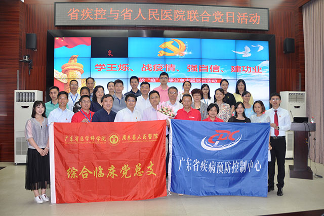 为贯彻落实中共广东省卫生健康委机关委员会关于《深入开展“学王烁、战疫情、强自信、建功业”活动工作方案》的要求,7月23日下午,我院综合临床总支与省疾控中心寄防所、微检所党支部就“学王烁、战疫情、强自信、建功业”开展联合主题党日活动,我院综合临床总支与省疾控中心寄防所、微检所党支部共有30余名党员干部参加。省疾控中心党委副书记、纪委书记詹建湘,我院党办主任张忠林等参加活动。
