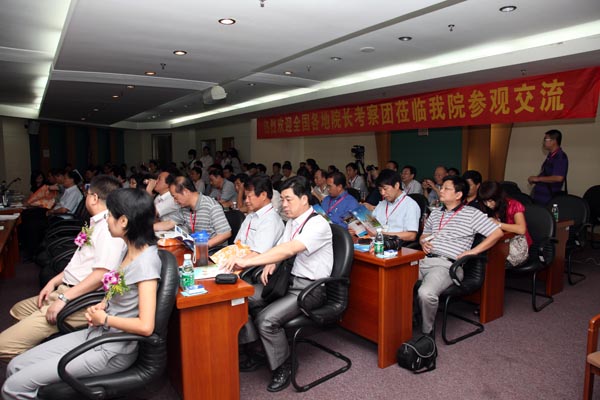 9月28日上午,在广东省医院协会组织下,来自全国各地二、三级医院共58名院长莅临我院参观访问。党委书记曾国洪代表医院向远道而来的院长致欢迎辞。在座谈会上,办公室副主任郭莉莉介绍了我院的总体概况,东川门诊主任孙建向介绍了东川门诊预约的做法和经验。院长们与我院代表进行了医院管理交流。会后,院长们分参观了我院东川门诊。