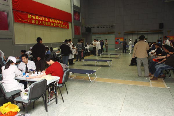 自1995年以来,我院先后组织无偿献血20次,至今累计无偿献血1,140,200毫升,共计无偿献血5466人次。自1995年以来,医院每年都获得广州市政府、广州市无偿献血工作委员会表彰颁发的“无偿献血先进单位”、“无偿献血先进集体”称号。