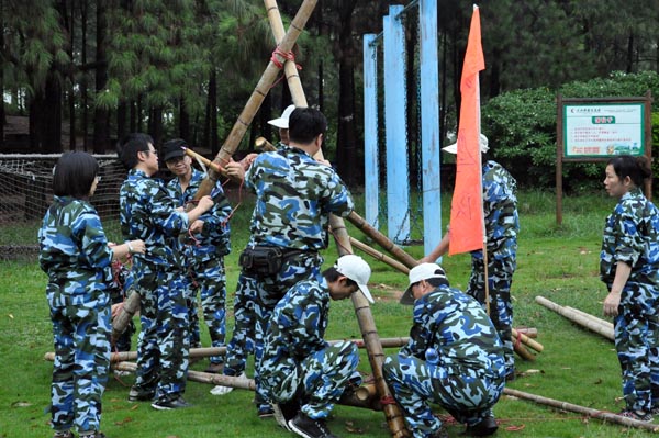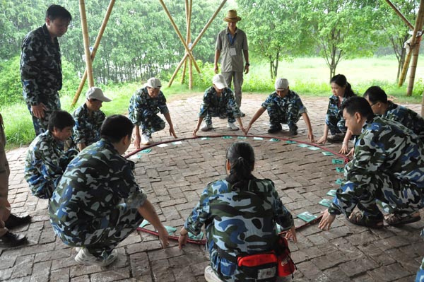 第一天,参与培训的干部被分为几个团队,队长由平时最基层的人员担任。拓展培训开始,要求团队在10分钟内完成名字、口号、队歌、队列的设计、构思和操练工作。在“热身破冰”、“寻宝比赛”、“急速时限”、“访古水战”等一系列团队配合完成的活动项目中,总务各“团队”成员无论职位高低,都在为了一个共同的目标充分发挥自己的潜能,相互支持、通力合作、服从指挥、群策群力调动团队成员的才智,力求在最短的时间内完成规定的任务,使队员明白一个出色的团队并非是强强联合,其核心力量在于优势互补。