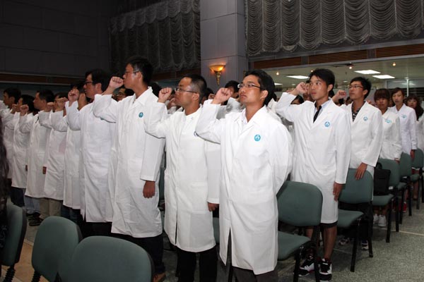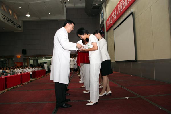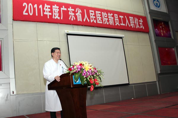 在新员工入职仪式上,林曙光院长首先对新员工的到来表示热烈欢迎,随后林院长讲述了省医的历史、现况和未来的发展契机,并结合历史大背景告诉我们可持续发展是祖国、党及民族乃至省医的必经之路。林院长强调我们不能就此满足现状,需时刻保持前进步伐。虽然我们每个个人的生命都是有限的,在历史长河中微不足道,但只要省医人团结一致、努力奋斗,终将为人类创造巨大的贡献。在讲到对新员工们的期望时,林院长强调了两点,其一是诚实,在面对金钱诱惑时,能够坚持原则,坚持一名医务工作者的誓言和操守,其二是做事情要不骄不躁,耐得住寂寞,无论是干临床还是做科研,都不能急功近利,因为积累和坚持永远是一名医务工作者取得进步和成功的关键,最后,林院长激励新员工要努力学习,在工作岗位上成长为未来的医学家、护理学家!