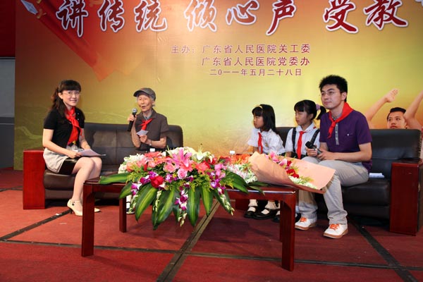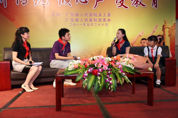 离休干部、原院党委书记申小丛通过自己的亲身经历生动地讲述了她20岁就参加了革命,在抗日战争时期开展地下工作的故事;院精神心理科王文菁心理治疗师讲授了青少年如何面对学习和生活压力问题,尤其对如何处理亲子关系、同伴压力、网络成瘾、儿童情绪和品行等,给大家的启发和教育尤为深刻。钟柏威、彭子轩小朋友的漂移板滑轮和画画表演博得全场的阵阵掌声,富有知识性、趣味性的抢答题把200多名天真可爱的孩子带到了欢乐的世界,把活动推向了高潮,在“我们是共产主义接班人”的歌声中结束。