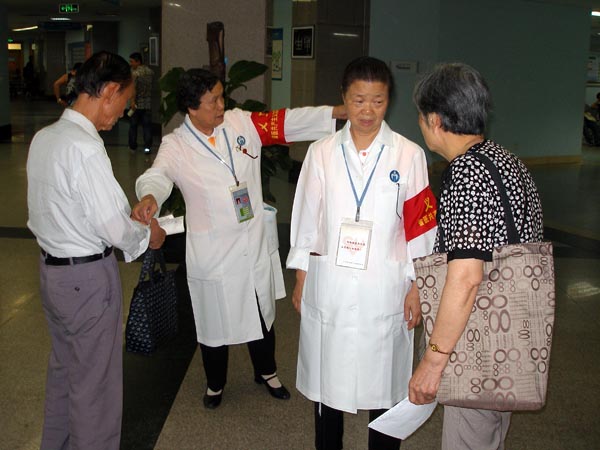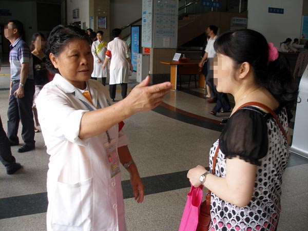 6月2日下午,为配合医院开展的“三好一满意服务”活动,以及迎接广州市“创建文明城市”活动。志愿者青松义工分队在党委办公室的统一部署和安排下,积极行动起来。陈书坤、廖玉群、李少兰三位队长接到任务后,加派10位志愿者,参加在东川门诊、英东楼门诊的导诊、指引服务。