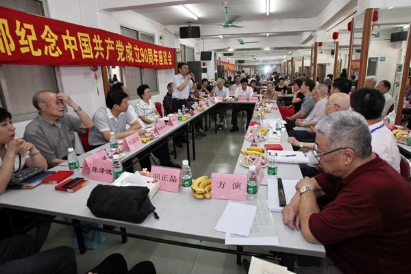 座谈会由老干处党总支书记陈纪新主持。会上,离休干部重温了我党90周年的光辉历史和取得的辉煌业绩,畅谈了改革开放以来迅猛发展的大好形势。通过讲述所见、所闻、所想、所感,深切地表达了对党的热爱、忠诚和为党的事业献身的信念和决心。