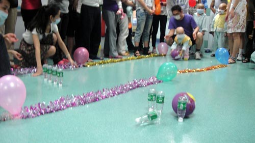 在活动中,无论是“快乐保龄球”游戏,还是“运球”亲子活动,小病友们与家长们都热情地参与,玩得不亦乐乎。小病友一改平时安静的样子,脸上笑容灿烂,整个病区充满了欢乐、温暖的气息。最后一环节“感恩的心,感恩有你”,在现有的材料中,用手撕、折叠、张贴一幅幅美丽的图画,并把它送给亲爱的爸爸妈妈,感谢他们的生育、养育之恩,不离不弃的伟大亲情。在“感恩的心”音乐中的渲染下,把深厚的感恩情怀表现得淋漓尽致。小病友的可爱与懂事,父母们感动得紧拥入怀。