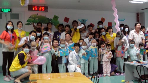 5月29日的下午,你如果有幸来到惠福肿瘤三区的病房,会发现这里仿佛进入了一个童话乐园,处处彩带飞舞、节日气氛相当浓厚。惠福志愿者分队、研究生支部与诗书街友缘志愿服务团队联手,在这里举办“大手牵小手 欢乐度六一”活动,与小病友、家长一同游戏欢乐。