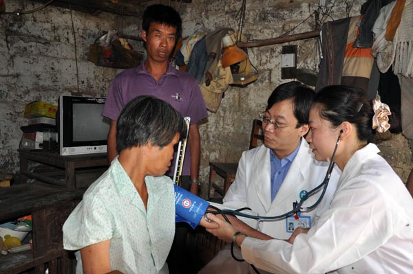 当天早上八点开始,义诊点前人头涌动,村民们热情高涨,纷纷前来就诊、咨询或取药。短短的几小时,医疗队已经接诊100多人,流动医疗队上门为十多户中风瘫痪的贫困村民进行诊治。
