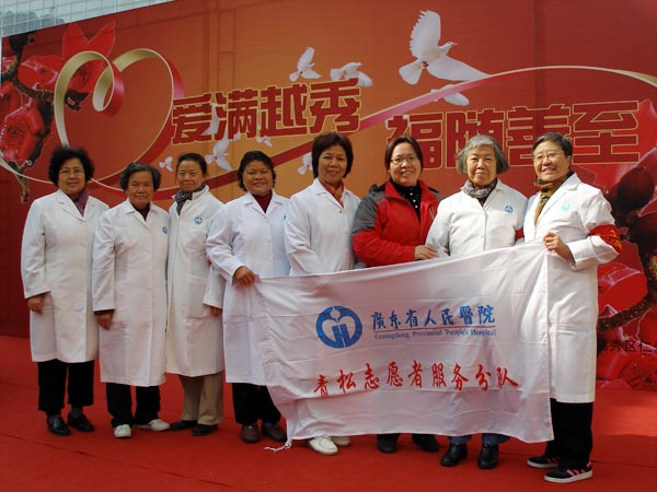 1月9日,我院青松义工服务分队一行8人,参加由越秀区民政局、慈善会等部门,在北京路步行街举行的“爱满越秀、福随善至” 2012越秀区新春送温暖暨慈善互助年启动仪式。为市民开展医疗健康咨询志愿服务。