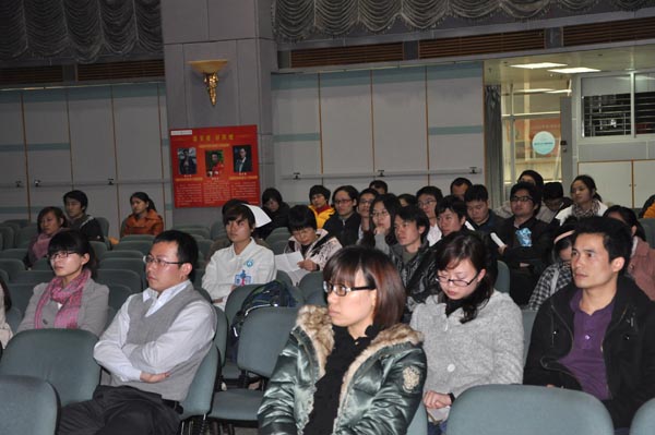他提出,参加辩论首先必须注意的就是要从尊重人性出发尊重对方辩手及其不同的观点,参加辩论赛跟一般的辩论不同之处就是在于与对方辩论的同时必须要多与评委、观众进行必要互动,好的辩手必须做到“承上启下,深入浅出”,而在与对方交锋过程中最关键是找出对方立论的薄弱环节,找出对方立论的假设和前提,予以破坏。在立论环节中要对辩题进行解释,然后条理清楚地分点论述,不宜对概念作太偏颇的界定,最好能够有一些生动的事例。盘问环节必须要直接面对对方问题,不可以回避。自由辩论环节要事先安排好“战场”,各人手上拿一些问题和事例,所有人都必须参与,相互之间要打好配合,而且必须安排一个冷静的人辩论到一定程度就“转战场”,在此环节中可以对对方的一些提问不予回应,但不可一味回避,双方要有交锋。在总结陈词环节,一般要安排队里最强、最稳、最冷静的辩手承当,要针对辩论进行情况和对方观点、立论有回应,而不可生硬地背诵事先准备好的总结词,要做到“乘胜追击”,也要“收复失地”。辩论赛的准备方面,建立辩论队之初要先分工搜索资料,然后经常碰头交换心得,到一定程度之后要做好立论、盘问、总结的分工,整个准备过程中最好安排“对手”进行陪练和“实战演习”,比赛前队内所有队员要把各自准备用的问题和实例都说出来,彼此有个了解可以互相呼应,并且要在这时分好自由辩论环节的“战场”。林瀚老师细腻、沉静、严密的讲课风格给大家留下深刻印象。