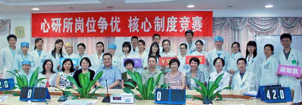 创先争优活动开展了三年,心研所始终坚持将之与临床工作紧密结合,连年以不同的形式举办了技能比武和核心制度竞赛。6月12日下午,心研所再次举行“岗位争优 核心制度竞赛”,并得到相关职能处室的大力支持,党委办公室主任李肖环、纪检监察处处长詹建湘、医务处副处长孙建、护理部副主任陈凌等到场,为竞赛指导助威。