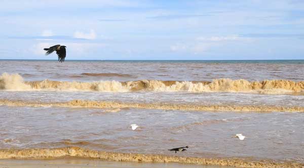 风雨过后,大西洋海岸严重污染,翻滚海水如同黄河水