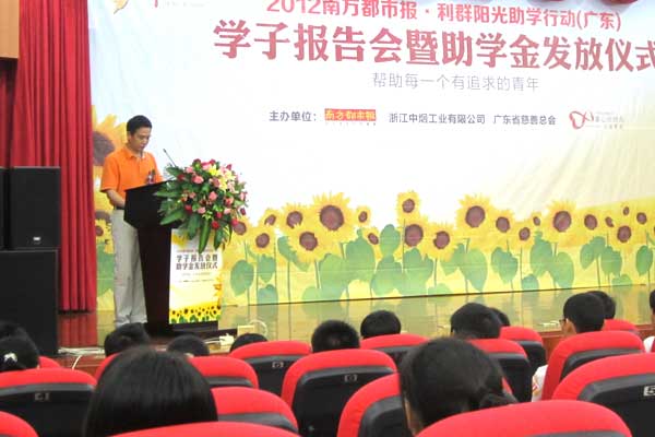 “倘若说父母之恩如三春之晖,那么社会各界、爱心人士就是冬日之暖阳,温暖了千万寒门学子。”8月21日下午,2012利群阳光助学行动广东区学子报告会暨助学金发放仪式召开,受到资助的优秀生代表的一番话说出了现场寒门学子的心声。