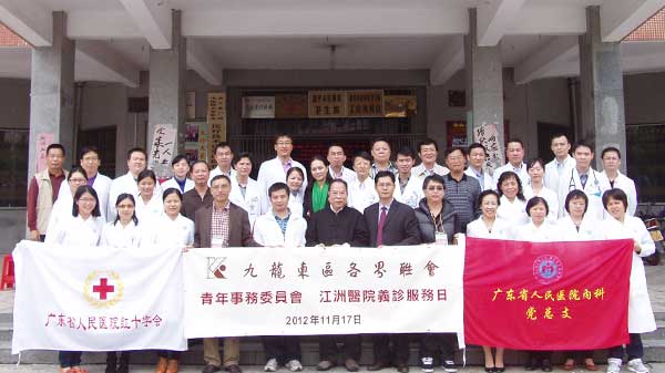 为深入学习贯彻党的十八大精神,提高贫困地区群众的健康水平,更好服务基层群众,8月17日,由我院红十字会主办、内科党总支承办的“为人民服务”义诊活动在恩平市君堂镇江州医院举行。本次活动,我院共选派了医疗护理专家24名,共为当地近1000名群众提供诊疗、咨询、查房等服务,节省群众费用5万多元,同时医疗队还随带了一批药品和健康手册赠送给当地群众。当天,恩平市卫生局局长邱达志、副局长刘笑云及当地镇政府等领导前往现场慰问医疗队员。
