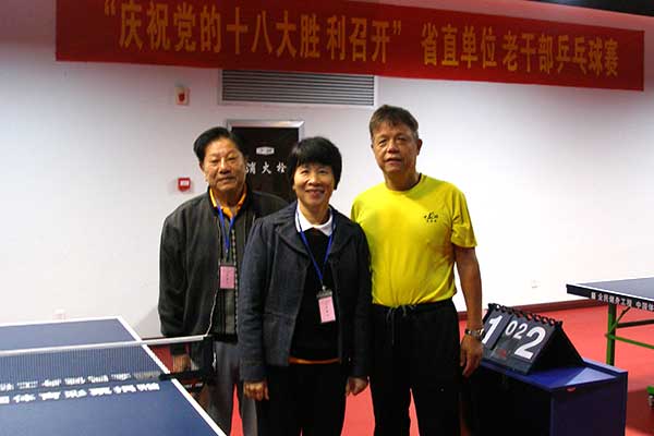 为庆祝党的“十八“大胜利召开,广东省老干局和省老干部活动中心,分别举行了不同形式的文体比赛活动。12月3日至4日,由省老干活动中心主办的老干部乒乓球赛,在省老干部活动中心乒乓球馆开打,我院老干处派出退休老同志许其顺、李肇荣、韦粉心组成的队伍,参加了比赛。