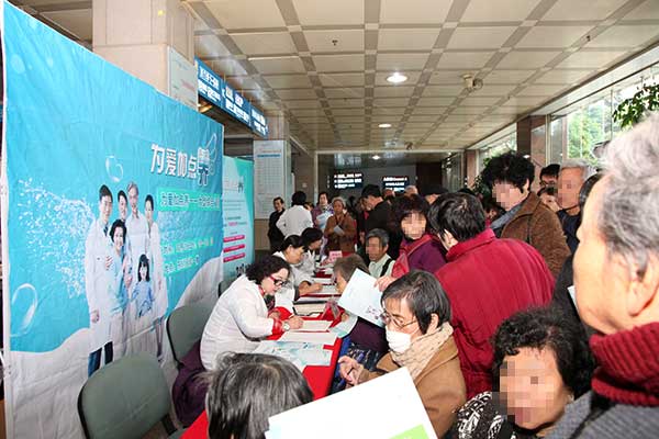 还没到义诊开诊的时间,已有许多热情的阿公、阿婆在东川门诊一楼大厅等候,把门诊大厅挤得水泄不通。上午9点,咨询台一字排开,各科专家们就营养不良、高血压、高血脂、糖尿病等疾病的营养问题现场答疑解惑。有些阿婆问完了一个专科,又去请教第二个专科。咨询台的各个专家的桌子前都排起了长队,专家们一一进行耐心的解答。义诊现场提供的免费测血糖服务,更是受到了市民们的欢迎。“这样的活动很好,希望能多办几次。”老人家发出了自己的感慨,原定上午11点30分结束的义诊一直持续到下午1点10分才结束。