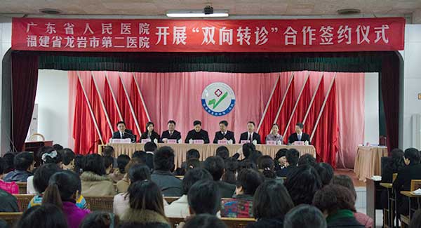 带着对革命老区人民的深情厚谊,带着对闽西山区的医疗事业发展的一份责任,12月19日下午,应福建省龙岩市人民政府、龙岩市卫生局、龙岩市第二医院的邀请,林展翼副院长率保健部、老研所、协和高级医疗中心等领导、专家一行5人前往龙岩市第二医院进行“双向转诊合作”的签约仪式。