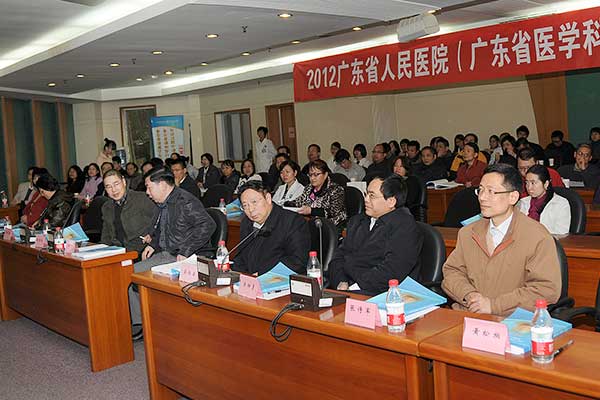 1月11日下午,由我院中医科承办的2012广东省人民医院(广东省医学科学院)中医药学术年会在我院东病区东一号楼三楼学术会议室召开。何斌副院长、医务处袁伟伟处长、中国中西医结合学会副会长吴伟康教授、广东省中西医结合学会副会长余细勇教授、老研所钱芸娟副所长、老研所党总支黎明书记、中医科以及中药房等医务人员共150余人参加了本次年会。