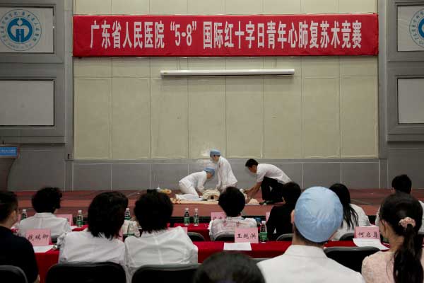 5月8日是国际红十字日,院红十字会、院团委联合举办国际红十字日青年心肺复苏术竞赛,院党委副书记、红会会长崔建星致辞,党办主任李肖环、各党总支书记出席,陈凌、王首红、甄享凡、张国林、李辉5位专家担任评委,17组选手参赛,ICU一区的温妙云医生、李远强护士组合以91.6分的成绩夺冠。