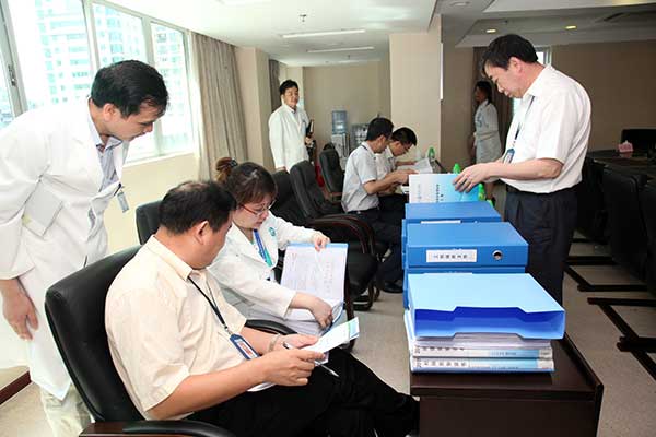5月31日上午,广州市医保局张秋红局长带领的专家检查组一行10人,对我院2012年度履行定点医疗机构服务协议情况开展现场检查。徐力新副院长带领社保处、医务处、信管处、计财处、药学部、东川前线服务部等多个部门的负责人和部份知名临床医疗专家参加了汇报会。
