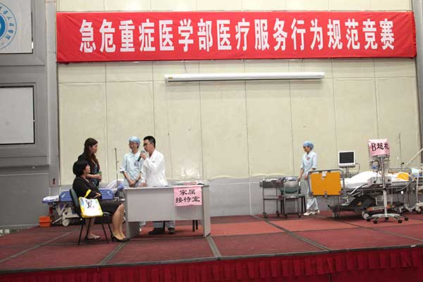 会上,曾国洪书记为大赛致辞,他针对近期医院各项工作中出现的问题,着重强调了实行人员行为规范是加强医院管理、规范医疗秩序、提高医务人员的职业素养和服务水平、保障患者合法权益和医疗安全的重要举措,充分肯定了急危重症医学部制订《急诊科医护人员行为规范》,对科内各相关岗位及人员在日常工作中所涉及到的医疗服务行为及服务用语提出具体规范要求的做法。号召全院各科室学习急危重症医学部经验,结合本科室实际情况,科学制订相关岗位及人员的行为规范和规范用语并做好培训工作,做到全员参与,灵活运用文明用语,严格规范个人行为,进一步改善服务态度,切实提高服务质量,树立我院医务人员的良好形象。