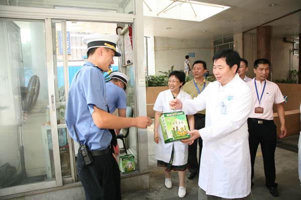 工会副主席邓南为一线保安送上清凉饮品