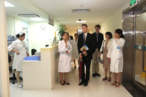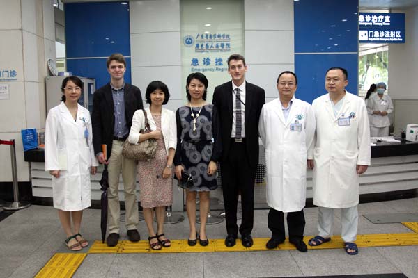 8月15日上午,美国驻广州领事馆经济政治处官员 Benjamin Struve, 环境、科技与卫生官员Nathan Kato-Wallace、马艳芬一行3人莅临我院参观访问。7月4日,机关总支副书记、人事处副处长郭莉莉应邀参加了美国国庆招待会活动并与新任的医务官员就中美医疗合作交换了意见。此次来宾的访问主要了解我院有关扶贫、双向转诊以及与国外姐妹医院的合作等信息,探讨双方合作的可能性。