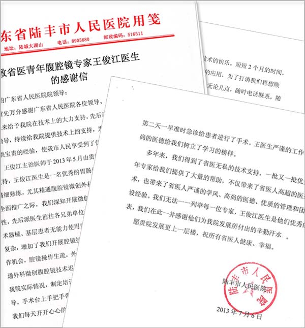 8月12日,我院收到对口帮扶单位——陆丰市人民医院寄来的感谢信,真挚地表达了对我院给予其技术、人才的无私帮扶的衷心感谢,热切地称赞了以普外二科王俊江医生为代表的青年专家,不仅带去了省医人高超的医疗技术,同时也带去了省医人严谨的学风、高尚的医德、优质的管理和团队建设经验。