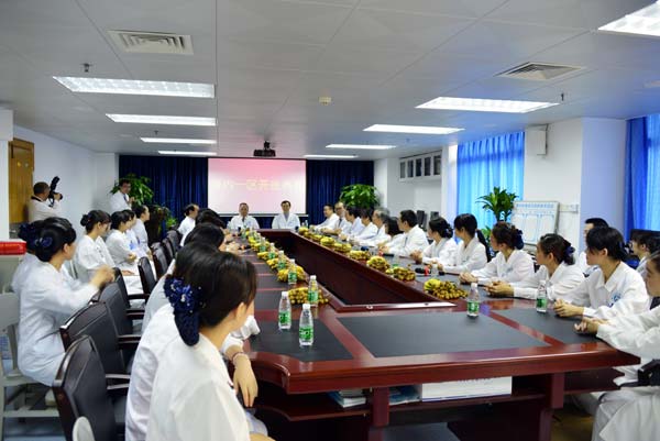 8月19日上午,肾内科老中青三代医护人员济济一堂,为崭新的肾内科一区举行简单的开业仪式。至此,作为国家临床重点专科,肾内科已完成学科整合,现拥有三个区、住院病床107张、固定血液透析机103台、连续性肾脏替代治疗机(CRRT)12台和移动式床边血液透析机2台,有医、护、技人员160人,影响力处于国内领先地位。在2012年国家临床重点专科肾脏病专业评审中,肾内科在全国排名第五。
