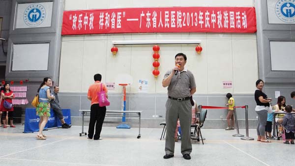 此次中秋游园活动在院党委副书记、工会主席崔建星的大力支持下,本着节俭办活动和注重活动效果的宗旨举办,游戏所用的道具大都利用现成的、低廉的生活用品,既环保又不失趣味。受崔主席委托,院工会副主席邓南现场为大家送去中秋的祝福。这次活动得到各片工会的积极配合,其中药学技诊片工会主席何启勇、大内科片工会主席邝惠冰、惠福分院片工会主席王铠、平洲分院片工会席李仁建更是亲自到现场组织游戏。