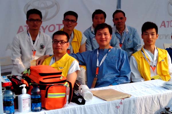 医疗队从早晨五点多在医院集中后出发,直到下午三点多回到医院,中途没有停歇,甚至连午餐也没有吃,因为午餐时间正好是选手们陆续到达终点,需要进行医疗处理的繁忙时段,他们的付出为广马提供了周全的医疗保障。