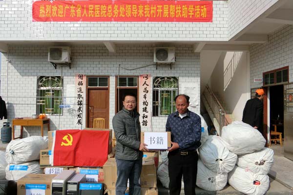 在访问村内唯一一所学校时,吴粤处长与村委书记曾胜华达成共识,2014年在该学校建立广东省人民医院总务处爱心图书角,并完善书柜、桌子等基础设施,定期组织总务处员工捐赠图书,为在求学路上的下潭村孩子们献出一份爱心。