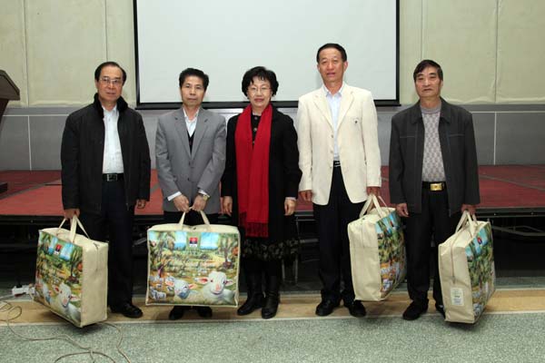 在欢快的气氛中,崔建星副书记为退休职工代表发放退休纪念品,并与大家合影留念。
