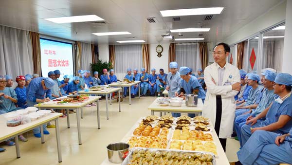 经过激烈角逐,评委们从色、香、味、形等标准进行现场打分,心外小儿组最终力压群雄斩获团体第一,而单项第一被体外麻醉组稳稳收入囊中,“十大厨神奖”则散落于众参赛队伍之中。厨艺大赛之后继续着趣味游戏、知识抢答、观赏影视大片、跨年倒计时等活动,大家在欢声笑语和其乐融融的氛围中共同迎来了新年的钟声。