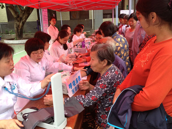 随着越来越多的村民来就诊,现场的气氛变得热烈起来,咨询台前坐诊的医疗、护理专家们热情解答村民们提出的各种问题,耐心的指导他们相关的专业知识;在最受村民欢迎的免费测血压、测血糖义诊台前,见到很多空巢老人的身影;村民们有些不会讲或听普通话,专家就请参加义诊中会讲客家话的医护人员充当翻译,有些专家为了更好地与村民沟通,一边义诊,一边在努力学习客家话,这让当地的村民备感亲切,也很受感动。