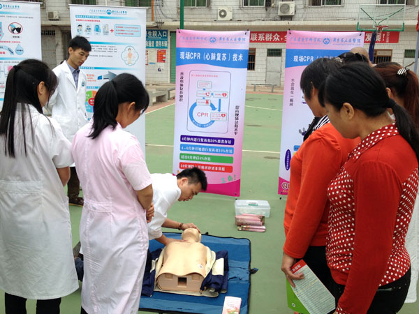 急救技能培训引来很多好奇的留守儿童和老人,一开始村民以为是真人,只看不敢碰,后来经过两位急诊专科护士的耐心讲解及操作示范,他们才慢慢动手学习心外按压。在了解了转水镇卫生院工作人员没学习过2010年版的急救技能后,护理专家给他们进行一次心肺复苏及婴儿抚触的专场培训。不管是老人、孩童还是当地医院的工作人员,他们学得特别认真,在专科护士的指导下,很快掌握了操作要领。