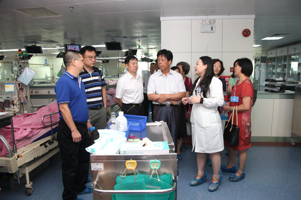 张念樵书记(左一)陪同社会监督员和家属参观科室