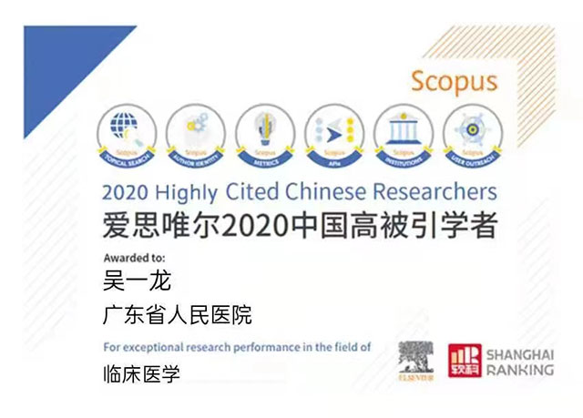 Prof. Wu Yilong on the List of Elsevier 2020 “Highly Cited Chinese Researchers”